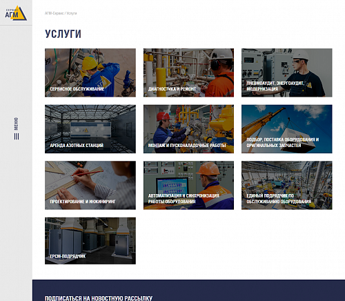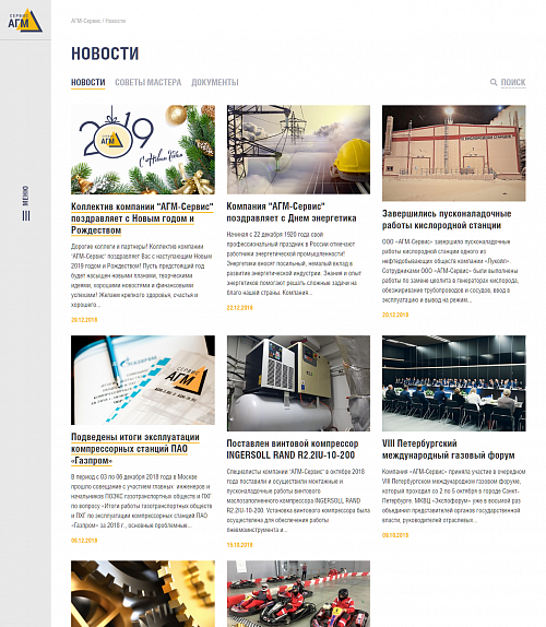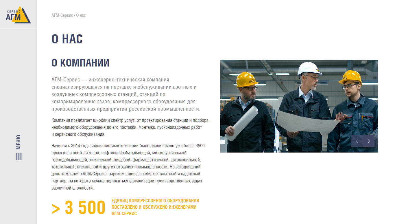 Мы тесно сотрудничали с компанией «АГМ-Сервис» на протяжении ведения всего проекта, так как у них было четкое представление о дизайне, реализацией которого мы занимались от начала и до конца. Также был запрос на то, чтобы была возможность удобного редактирования, что нам успешно удалось реализовать при помощи редактируемых блоков. С их помощью наш клиент может наполнять сайт и менять блоки местами без обращения к специалистам в любом из разделов сайта по мере необходимости.
